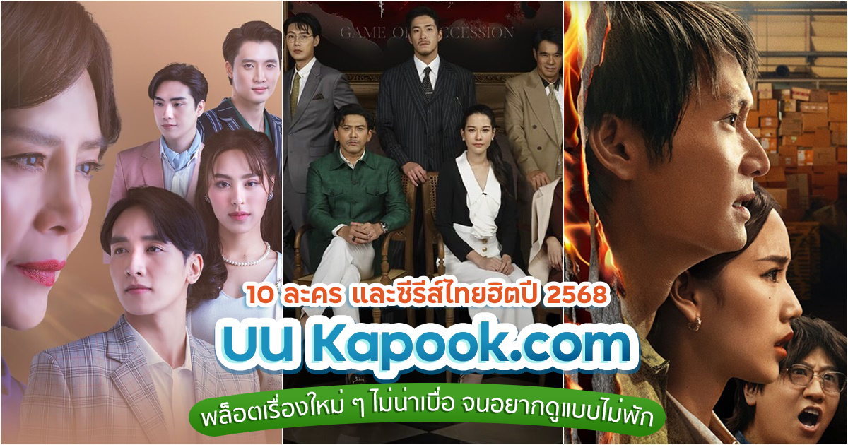 รวม 10 อันดับ ละคร และซีรีส์ไทยสุดฮิต บนเว็บไซต์ Kapook.com พล็อตเรื่องใหม่ ๆ ทำให้คนดูไม่เบื่อจนต้องติดตามจนจบ ท่ามกลางกระแสละครและซีรีส์ที่แข่งขันกันอย่างเข้มข้นในช่วงเวลานี้ ทั้งแนวดราม่าครอบครัว ความรัก ธุรกิจ ระทึกขวัญ ไปจนถึงพีเรียดเข้มข้น ต่างถ่ายทอดเรื่องราวที่สะท้อนอารมณ์และความซับซ้อนของชีวิตในหลากหลายมิติ เราเลยจะพาคุณไปสำรวจ 10 ละครและซีรีส์ไทยฮิต บนเว็บไซต์ Kapook.com ของปี 2568 นี้ ไม่ว่าจะเป็นปมความสัมพันธ์ สงครามแห่งความทะเยอทะยาน หรือการต่อสู้กับโชคชะตา แต่ละเรื่องล้วนมีเอกลักษณ์และประเด็นที่ชวนติดตาม พร้อมพาผู้อ่านดำดิ่งสู่โลกของตัวละครและเรื่องราวที่ทั้งเข้มข้น ซาบซึ้ง และสะท้อนความจริงของหัวใจมนุษย์อย่างลึกซึ้ง ละครดราม่าเข้มข้นที่สะท้อนความซับซ้อนของความสัมพันธ์ในครอบครัว เมื่อสายใยทางสายเลือดที่ควรเป็นที่พึ่งพิง กลับกลายเป็นจุดเริ่มต้นของความขัดแย้ง ความลับ และบาดแผลในใจ ตัวละครแต่ละคนต้องเผชิญหน้ากับความจริงที่หลีกเลี่ยงไม่ได้ ระหว่างความรัก ความแค้น และการให้อภัย ทำให้เรื่องราวดำเนินไปอย่างหนักแน่นและชวนตั้งคำถามถึงความหมายที่แท้จริงของคำว่า "ครอบครัว" นักแสดงนำ : อาเล็ก ธีรเดช, จีน่า ญีนา, สมิธ ภาสวิชญ์ และ จ๊อบ ธัชพล เรื่องราวของ คุณนายเหมย หญิงสาวในครอบครัวจีนที่ใช้ชีวิตปากกัดตีนถีบจนร่ำรวยกลายเป็นเศรษฐินีที่คาดหวังสิ่งใดก็ต้องได้ตามหวัง จนกลายเป็นกรอบบังคับให้ลูกชายทั้งสามทำตามในสิ่งที่เธอต้องการ ทั้งชีวิตส่วนตัว และความรัก แต่ทุกอย่างก็เปลี่ยนไป เมื่อมีหญิงสาวนักเรียนนอกสุดมั่น ที่ไม่ยอมก้มหัวให้ความร้ายกาจของคุณนายเหมย ได้เข้ามาในชีวิตของลูกชายเธอ จนทำให้พี่น้องต้องแตกหักกัน ความรักจากแม่จะทำให้ลูก ๆ ได้มีความสุขและสมหวังอย่างไร นักแสดงนำ : กองทัพ พีค, พีพี ปุญญ์ปรีดี, ต่าย เพ็ญพักตร์, มีน พีรวิชญ์ และ ตี๋ ธนพล ซีรีส์ดราม่าธุรกิจที่เข้มข้นด้วยเกมการแข่งขันในโลกการขนส่ง โดยมี 5 นักแสดงนำเป็นแกนหลักในการขับเคลื่อนเรื่องราว ซีรีส์เรื่องนี้สะท้อนโลกธุรกิจที่ไม่มีคำว่าปรานี และตั้งคำถามถึงราคาที่ต้องจ่ายของคำว่า "ความสำเร็จ" โดยแต่ละตัวละครมีบทบาท เป้าหมาย และวิธีคิดที่แตกต่างกัน นำไปสู่การปะทะทั้งเชิงกลยุทธ์และอารมณ์ และแสดงได้ดีจนคนดูอยากรู้จักประวัติของพวกเขา และซีรีส์เรื่องนี้ยังโดดเด่นจนได้เข้าชิง 5 รางวัลใหญ่ เวที AACA 2025 อีกด้วย นักแสดงนำ : ไอซ์ซึ ณัฐรัตน์, เจนเย่ เมธิกา, พลัง โลกศิลป์, เอก ธเนศ และ พีช พชร ละครดราม่าที่ตีแผ่ด้านมืดของความร