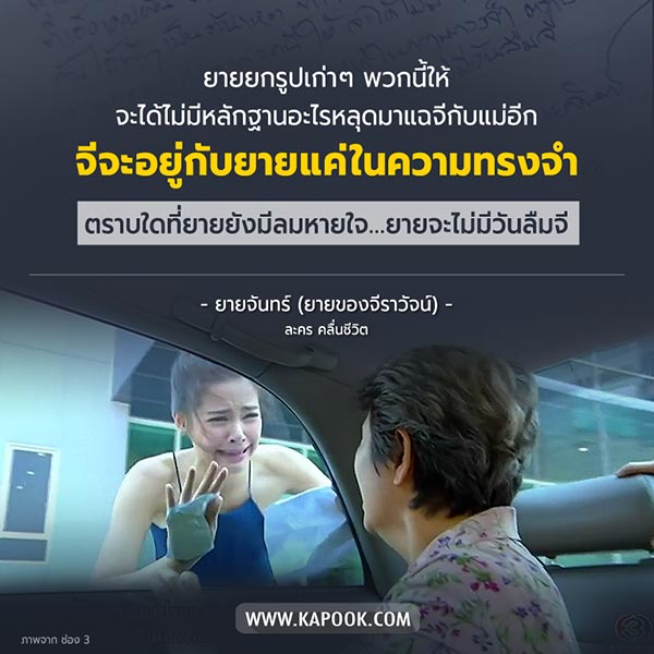 โดยตอนล่าสุด (7 กุมภาพันธ์ 2560) ซึ่งเป็นซีนอารมณ์ของสาวญาญ่า หลังจากที่จีได้รับจดหมาย และรู้ความจริงว่าแม่ของตัวเองเซ็นเช็ค 2 ล้านบาท เพื่อให้เงินยายจันทร์เพื่อให้ออกไปจากชีวิตของเธอ พร้อมกับที่ยายเองได้มอบรูปถ่ายใบเก่า ๆ ให้จีเก็บไว้ เพื่อที่จะได้ไม่มีรูปหลุดออกมาทำให้เสียชื่อเสียงอีก ก่อนที่จีจะวิ่งลงลิฟต์ เพื่อเห็นว่ายายนั่งรถออกไป ซึ่งจีเองก็ถึงกับบ่อน้ำตาแตก ร้องไห้สะอื้นที่ต้องจากยายจันทร์ ผู้เป็นที่พักพิงหนึ่งเดียวของเธอตั้งแต่เด็ก ได้ตัดสินใจเดินออกไปจากชีวิตเธอ แม้เงินจำนวนมาก ก็ไม่สามารถซื้อคุณยายได้