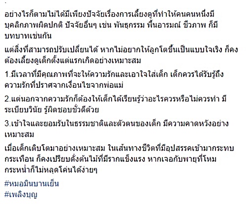 คุณหมอจากเพจดัง เผยบทความน่าสนใจ ให้ข้อคิดดี ๆ จากละคร เพลิงบุญ เลี้ยงลูกแบบไหน ให้มีความเป็นใจเริง