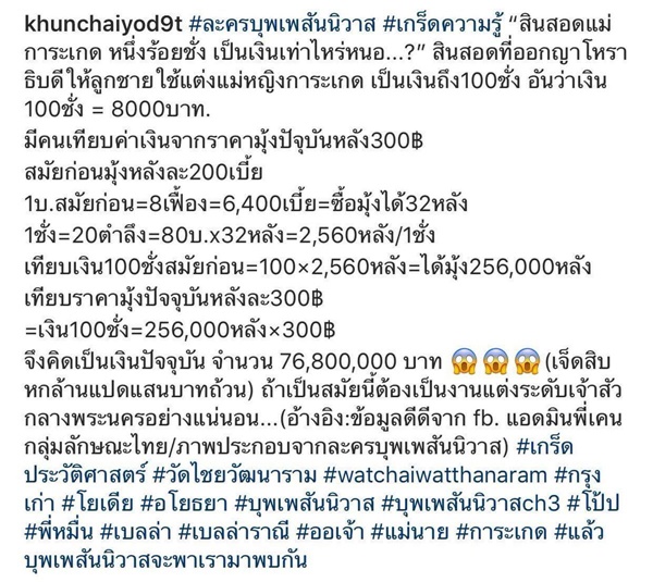 จึงคิดเป็นเงินปัจจุบัน จำนวน 76,800,000 บาท !! (เจ็ดสิบหกล้านแปดแสนบาทถ้วน)