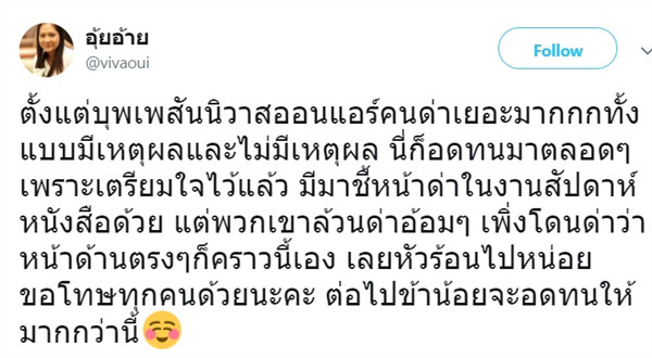รอมแพง คนเขียน บุพเพสันนิวาส ขอโทษแล้ว ปมอารมณ์ร้อนตอบโต้กลับ หลังเจอคนมาชี้หน้าด่ากลางงานสัปดาห์หนังสือ เผยที่ผ่านมาทนกับคำด่ามาตลอด แต่คราวนี้โดนด่าหน้าด้าน