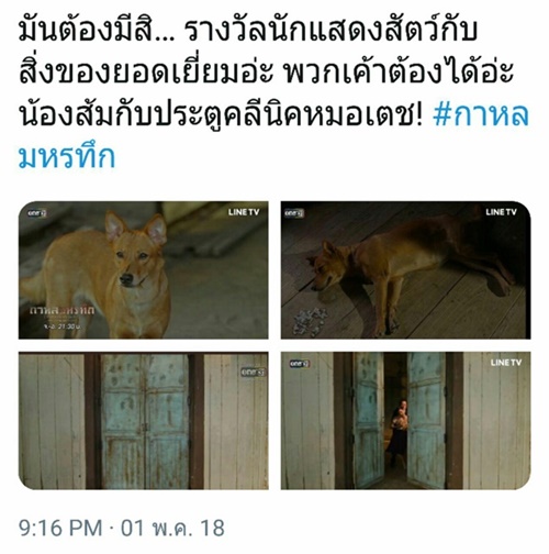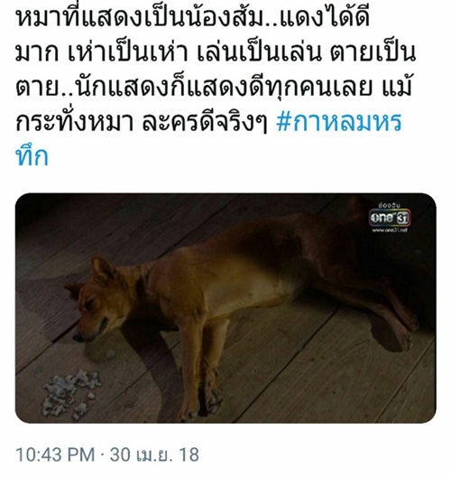 แฟนละครชื่นชม น้องส้ม สุนัขแสนรู้ในละคร กาหลมหรทึก เล่นดีจนอยากมีรางวัลมอบให้ แม้แต่ฉากตอนตายยังเนียนสุด ๆ
