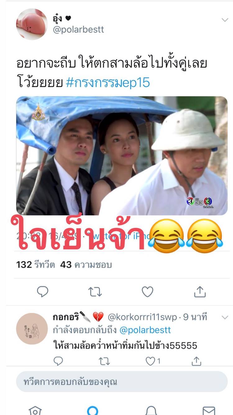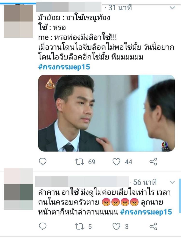ขณะที่หนุ่ม เพ็ชร ฐกฤต ผู้รับบท อาใช้ ก็ดูจะรู้ชะตากรรมตัวเอง โพสต์รูปจากในละครลง IG พร้อมข้อความว่า "ตอนนี้หน้าเฮียไม่ใช่หน้าคนแล้วจ้า ใครเกลียดเฮีย... มากองรวมกันตรงนี้จ๊าาาา #เบาๆเดี๋ยวความดันขึ้น #กรงกรรม#เฮียใช้" ไม่รู้ว่ารอบนี้จะโดนด่าหนัก จน IG รวนอีกรอบหรือเปล่า (ฮา)