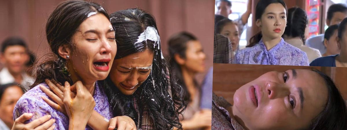 โดยในตัวอย่างตอนล่าสุด (23 เมษายน 2562) เราจะได้เห็นฉากที่ เรณู ถูกชาวบ้านรุมประณาม หลังถูกแฉ เธอและน้องสาวถูกรุมทำร้าย ขับไล่ ปาข้าวของใส่ จนสภาพยับเยิน