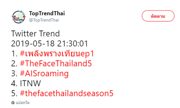 ออกอากาศตอนแรกก็สนุกสนาน เข้มข้น จนติดเทรนด์ทวิตเตอร์อันดับ 1 สำหรับละครเรื่อง เพลิงพรางเทียน ทางช่อง 3 กระทั่งละครจบแต่คนไม่จบ ทวีตต่อกันรัว ๆ ถึงความสนุกสนานในเรื่อง โดยเฉพาะพล็อตเรื่องที่แปลกใหม่ ฉีกกฎละครไทย เนื่องจากพระเอกนางเอกเรื่องนี้ เป็นชู้กันตั้งแต่ต้นเรื่อง
