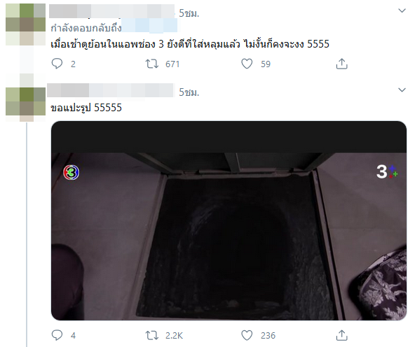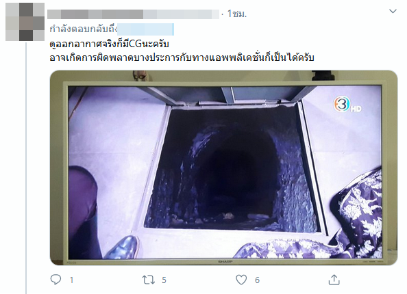 อย่างไรก็ตาม ก็มีแฟนละครอีกด้านออกมาชี้แจงแทนว่า หากดูในแอปฯ ของช่อง 3 หรือดูสดในโทรทัศน์จะเป็นภาพ CG หลุมลึกตามปกติ