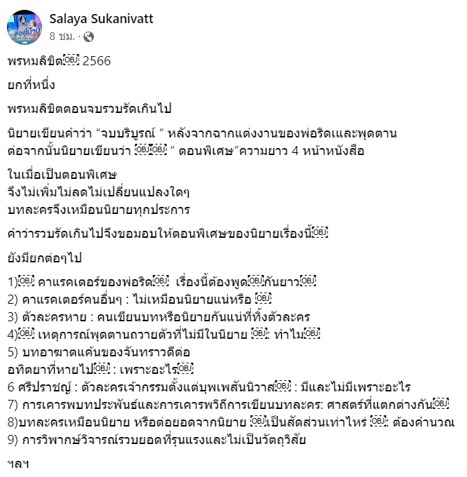 แดง ศัลยา โพสต์ชี้แจงเรื่อง พรหมลิขิต ยกแรก ดราม่าตอนจบรวบรัดเกินไป บอกบทละครเหมือนนิยาย - รอมแพง โพสต์น้อมรับความผิดพลาด ทำได้ดีที่สุดเท่านี้