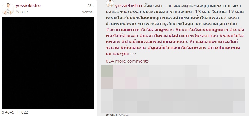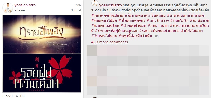 ล่าสุด (20 กันยายน 2557) จ๋า ยศสินี ณ นคร ผู้จัดละครชื่อดังของช่อง 3 ซึ่งตอนนี้มีผลงานละครที่กำลังออกอากาศอยู่ 2 เรื่อง คือ รอยฝันตะวันเดือด และ ทรายสีเพลิง ได้ออกมาโพสต์อินสตาแกรมประกาศว่า ต้องตัดจบละคร รอยฝันตะวันเดือด จาก 13 ตอน ให้เหลือ 12 ตอน เพื่อให้ทันกับเหตุการณ์ ช่อง 3 จอดำ ที่กำลังจะเกิดขึ้น ส่วนเรื่อง ทรายสีเพลิง หวังว่าผู้ชมจะสามารถดูได้ต่อไปผ่านทางหนวดกุ้งก้างปลา พร้อมขอบคุณกำลังใจจากแฟนละครด้วย